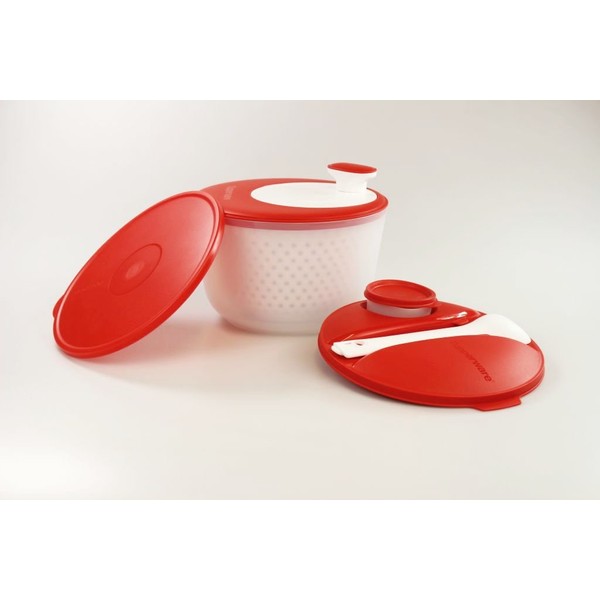 Tupperware Salad Spinner Salad Carousel 3.8 L Red/White + Lid + Cutlery + Container 34352