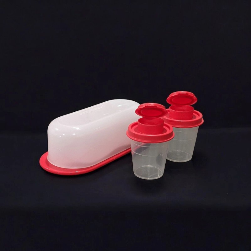 TUPPERWARE Smidgets SALT & PEPPER SHAKERS & BUTTER DISH SET - Red Color