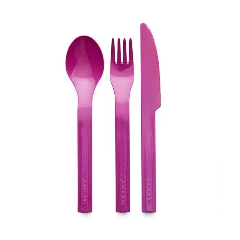Tupperware Snap Together On The Go Utensils Fork Knife Spoon in Purple New