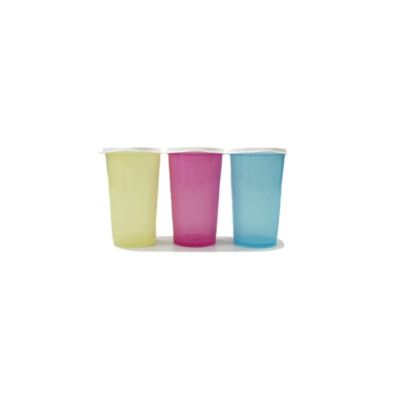 Tupperware To Go Eco 330 ml Yellow + Pink + Blue Cup Drinking Cup with Lid 39191