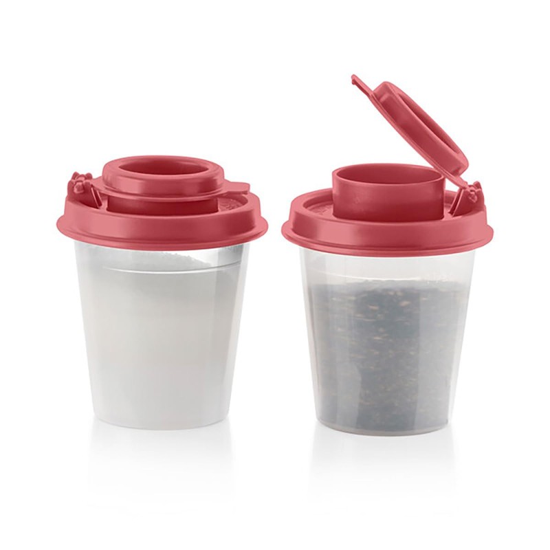 - Tupperware Tupper Mini Midget Salt and Pepper Shakers 2 Ounce Set Old Rose color seal