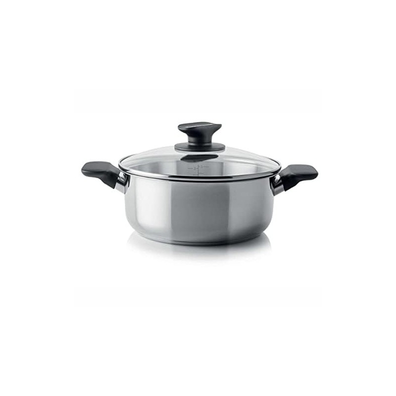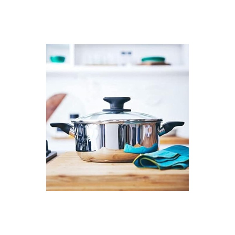 - Glass Cover: The weighted glass cover stops the steam allowing for waterless cooking, the glass allows you to check the contents without lifting the lid Calibration: The measure markings makes it easy to measure and add up liquids. Material and Capacity: The Universal Stockpot is made of stainless steel and has acapacity of 4L
