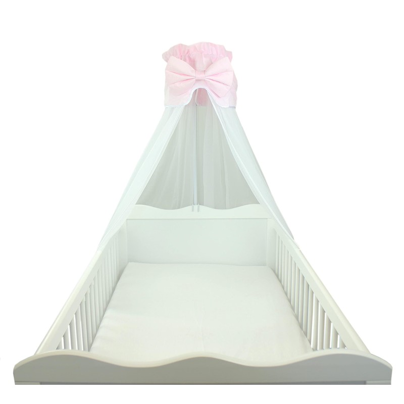This lightweight canopy fits perfectly with any cot and provides a pleasant sleeping atmosphere. Decorated with a large bow. Choose from great designs and colours. Ideal for cot 60 x 120 cm and 70 x 140 cm. Made in the EU