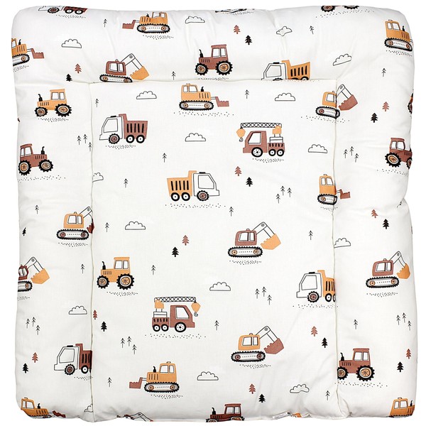 TupTam Baby Changing Mat with Cotton Cover Patterned Construction Vehicles / Digger / Beige Size: 70 x 70 cm