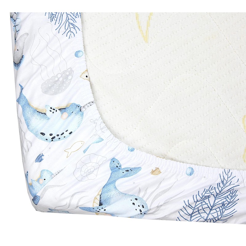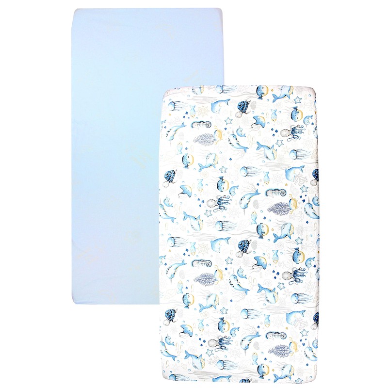 TupTam Baby Fitted Sheet for Baby Cot Bed Pack of 2, Colour: Sea Creatures Blue, Size: 90 x 200 cm
