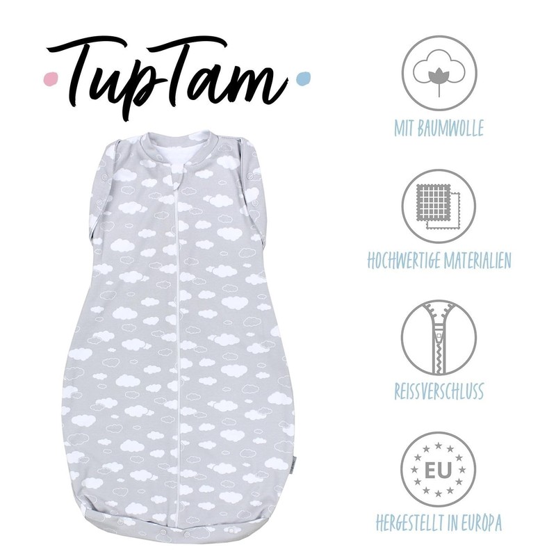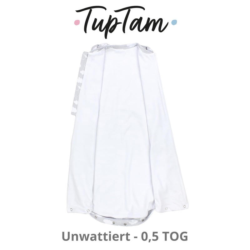 TupTam Baby Swaddling Bag, Oeko-Tex Certified Materials, Padded Baby Sleeping Bag, 2.5 Tog, Unisex, Unpadded 0.5 tog / clouds grey
