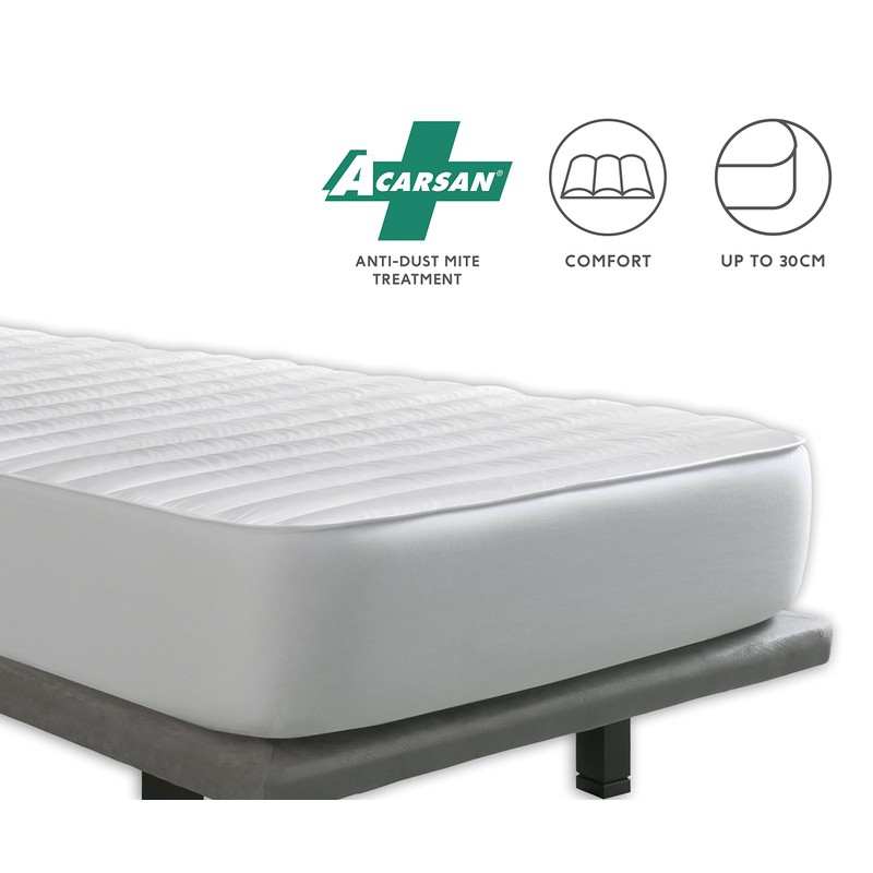 - Anti-dust mite. Thanks to the Acarsan treatment of the padding filling, the mattress protector creates a barrier against mites. Mites are the most common triggers for allergies that can provoke asthma and breathing difficulties. Therefore, this product is suitable for people with dust mite allergies. This Acarsan treatment is wash resistant.