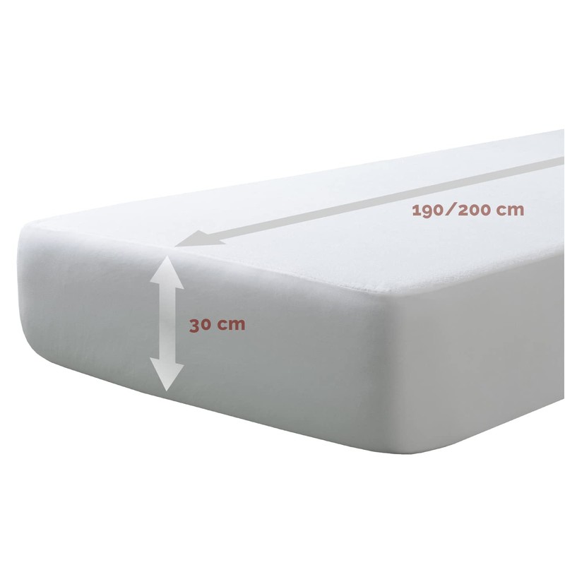 - Perfect fit. The mattress protector adapts to the mattress in the same way as a fitted sheet. It adapts perfectly to mattresses from 190 cm to 200 cm long and 30 cm thick.