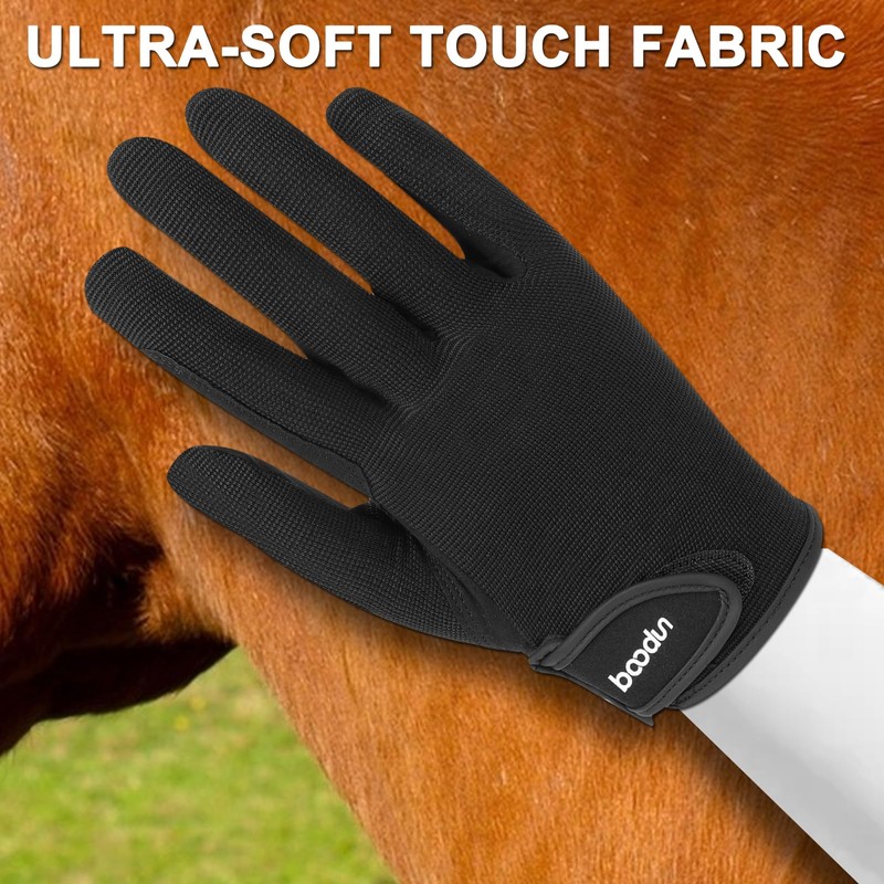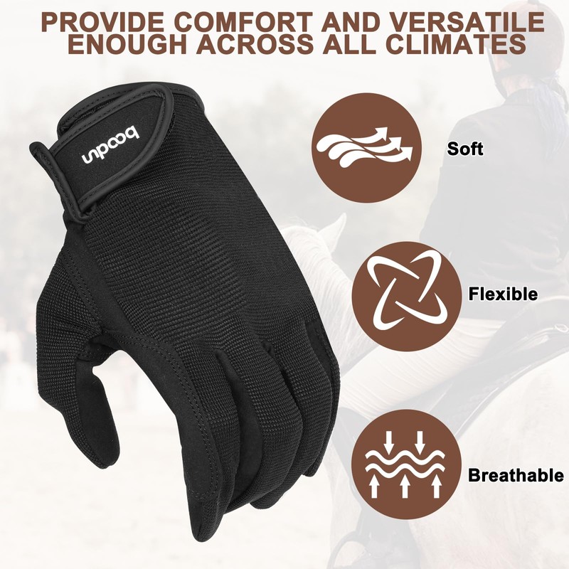 Turbovera Outdoor Durable, Non-Slip Microfibre Riding Gloves for Men and Women - Professional Riding Equipment with Adjustable Strap, Breathable & Soft (Black, S/M)