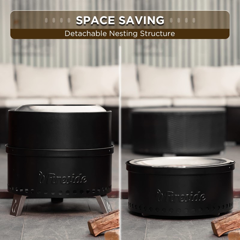 - Unique Nested Design: Comes with four pieces, a flame ring, top piece, fire tray, and bottom piece with foldable legs; assembles in minutes; compact 8.3" height in a box saves space for easy travel and storage