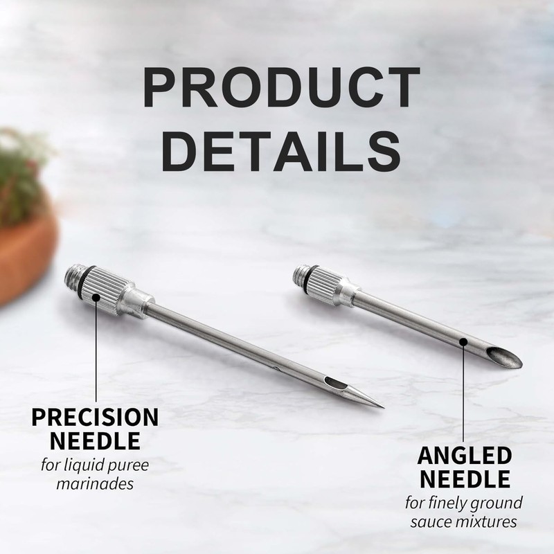 - Meat Injector:The ergonomic design is not only easy to hold, but also allows precise control of the amount used when applying, Two stainless steel injector needles and cleaning brush included, clean-up is easy with the included bonus cleaning brush.