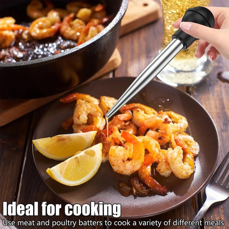 - Turkey Baster for Cooking & bbq: our turkey injector syringe creates powerful suction to retrieve succulent juices from the pan, melted butter, a marinade, or other sauces you want drizzled over the meat. You can screw injector needle onto the baster to inject flavorful juices or sauces for deeper penetration.