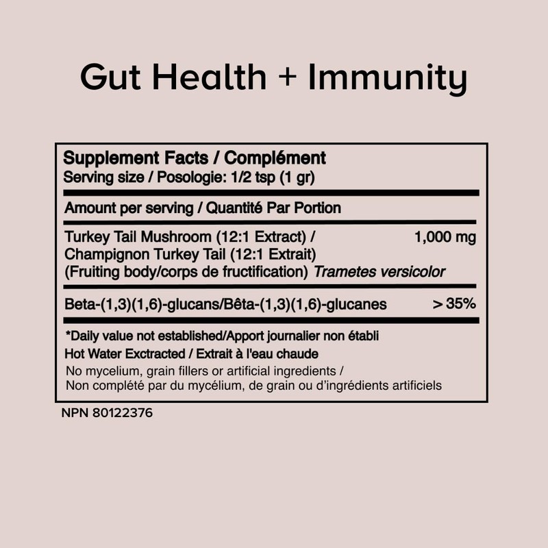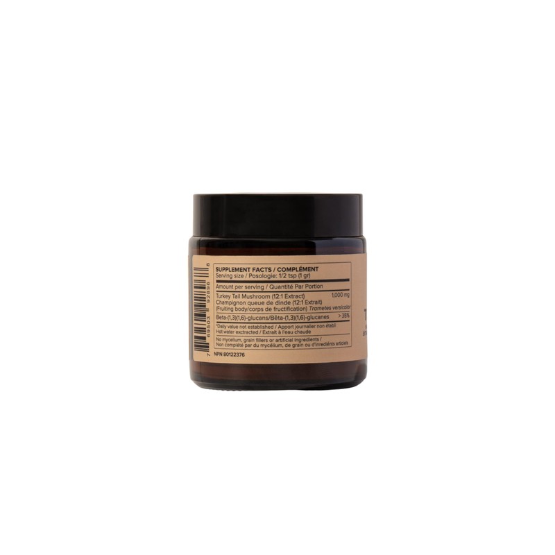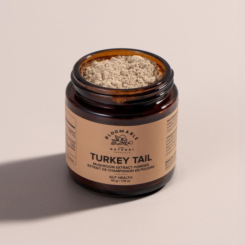 - Turkey Tail Mushroom Extract Powder: Made using Turkey Tail mushroom that is grown on wood, Turkey Tail is a source of fungal polysaccharides with immunomodulating properties.