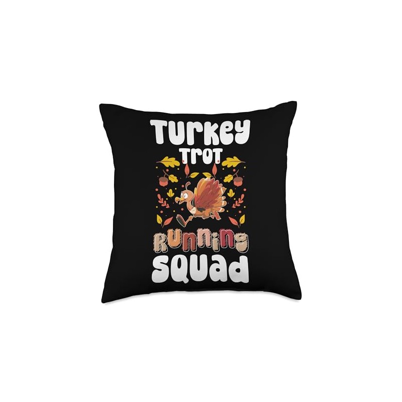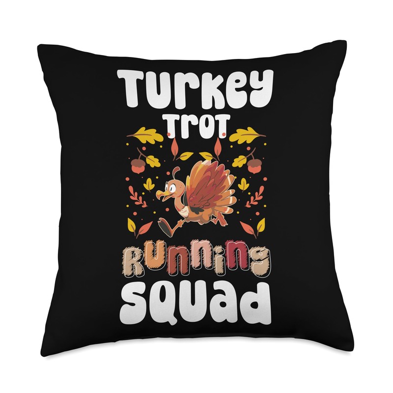 Turkey Trot Running Squad Thanksgiving Throw Pillow