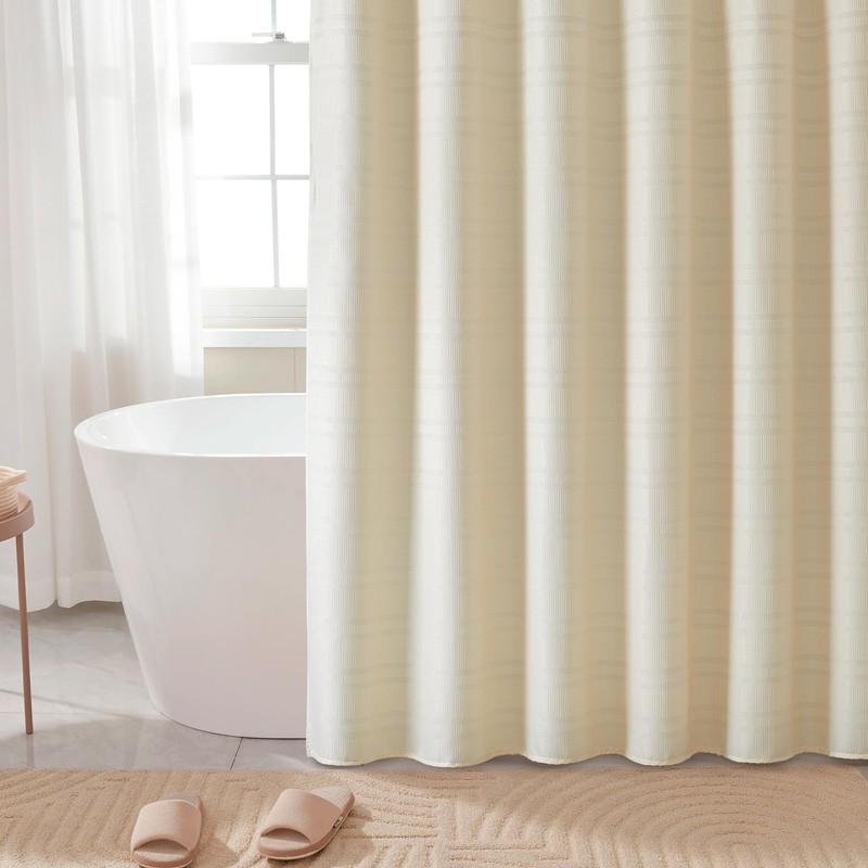 - 【Waffle Weave Shower Curtain】TURKIO cream shower curtain waffle weave is made from expertly chosen and tested Polyester Fabric, touches like a cotton feel. Honeycomb waffle weave pattern adds elegance to your bathroom.