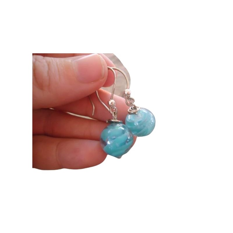 ✿ TÜRKISBLAUE MURMEL & LANGE HAKEN ✿ Glas Ohrringe