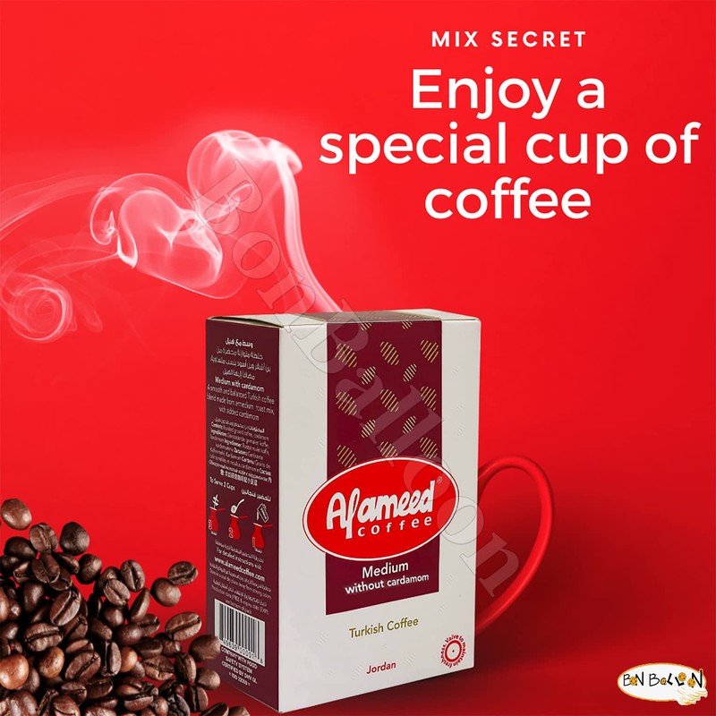 - Al Ameed Pure Arabic coffee , Turkish Coffee Medium Roasted Without Cardamom . Have it Turkish With Or Without Cardamom Medium , Or You Can Have It As a French Coffee Without Creamer . It Depends On Your Choice And Your Taste To Get Your Favorite Coffee Cup .