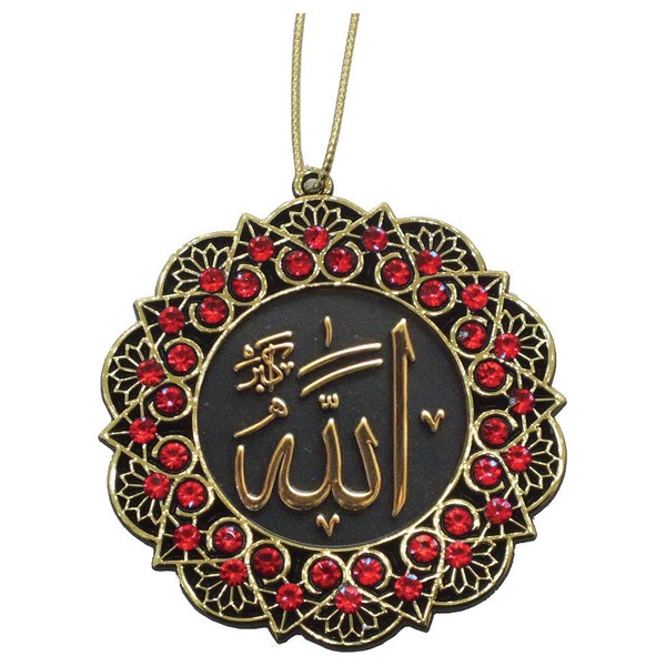 Turkish Islamic Ottoman Double-Sided Allah Muhammad Star Shaped Car Rear View Mirror Hanger Medallion Pendant Accessory (Gold/Red)