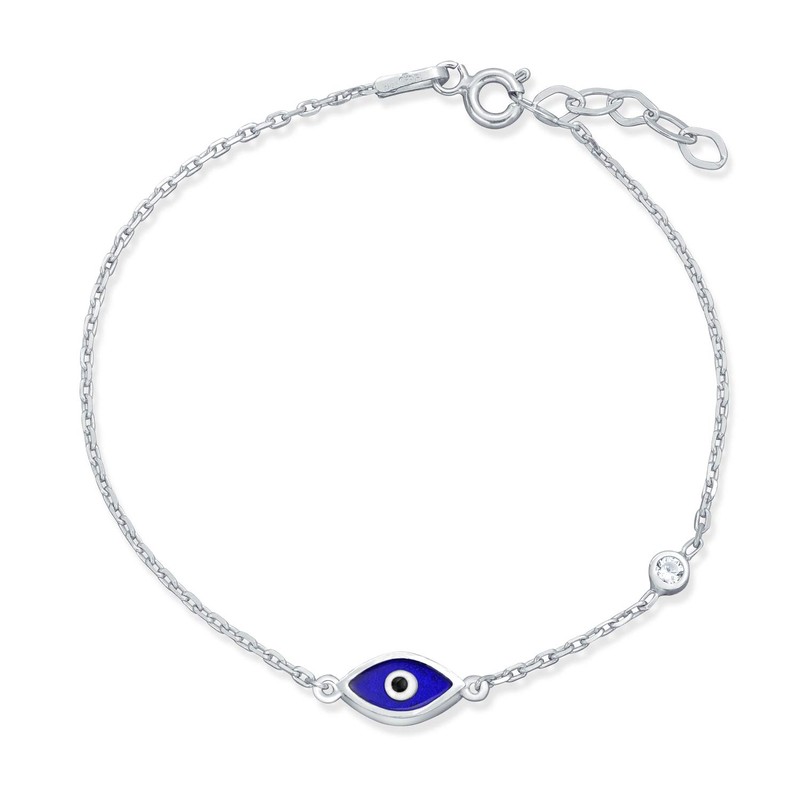 Turkish Minimalist Simple Evil Eye Charm Bracelet For Teen For Women Accent Cubic Zirconia CZ .925 Sterling Silver Extender