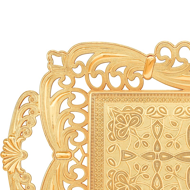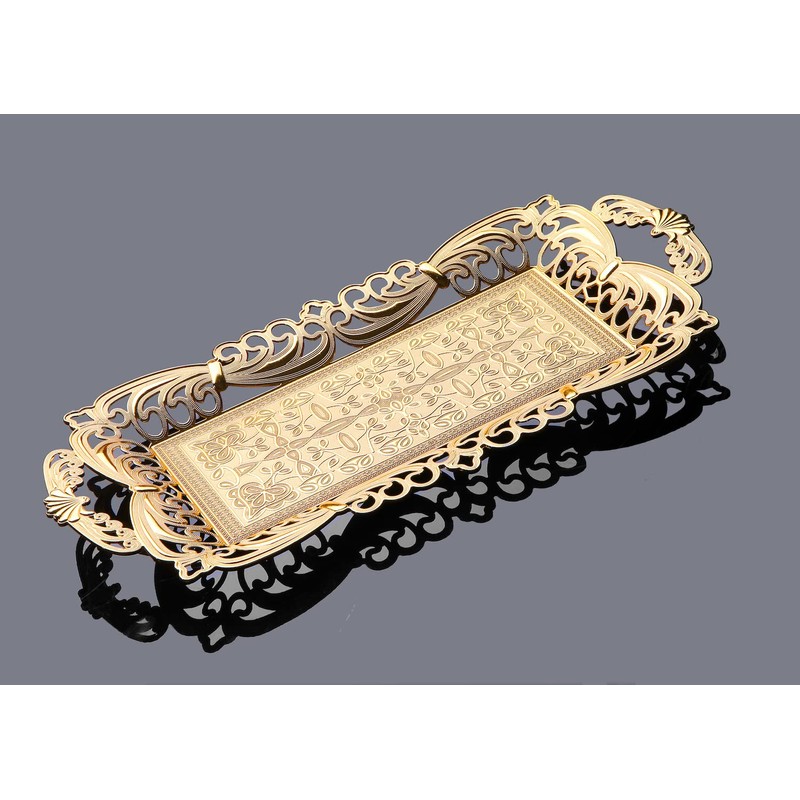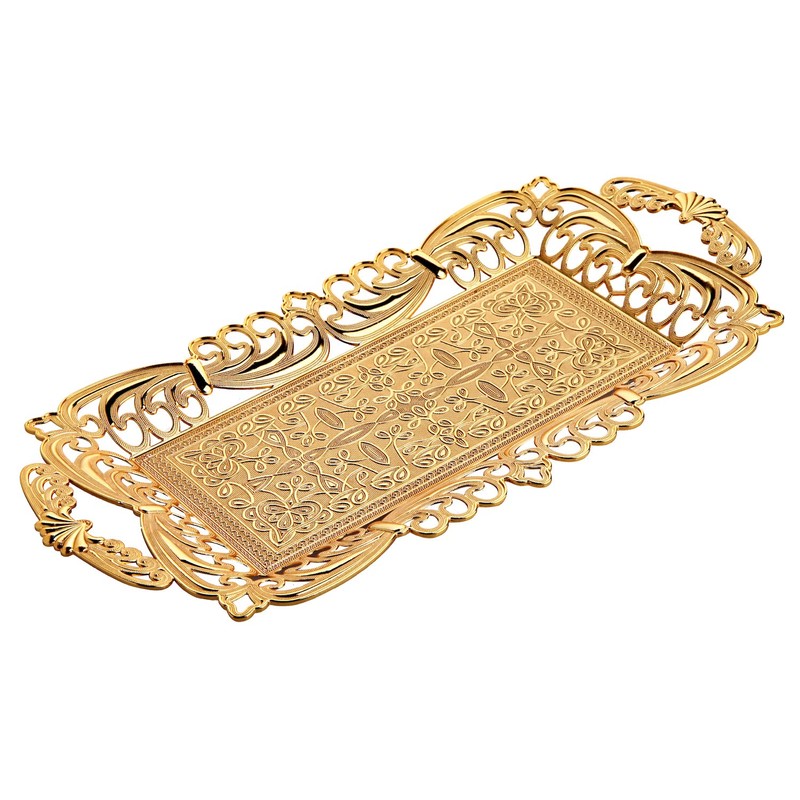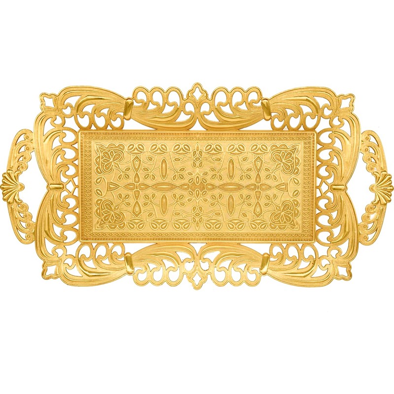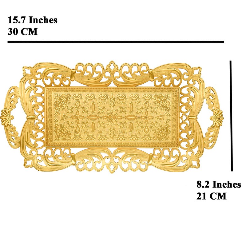 Turkish Tea Coffee Serving Tray with Handles Ottoman Decorative (Gold)