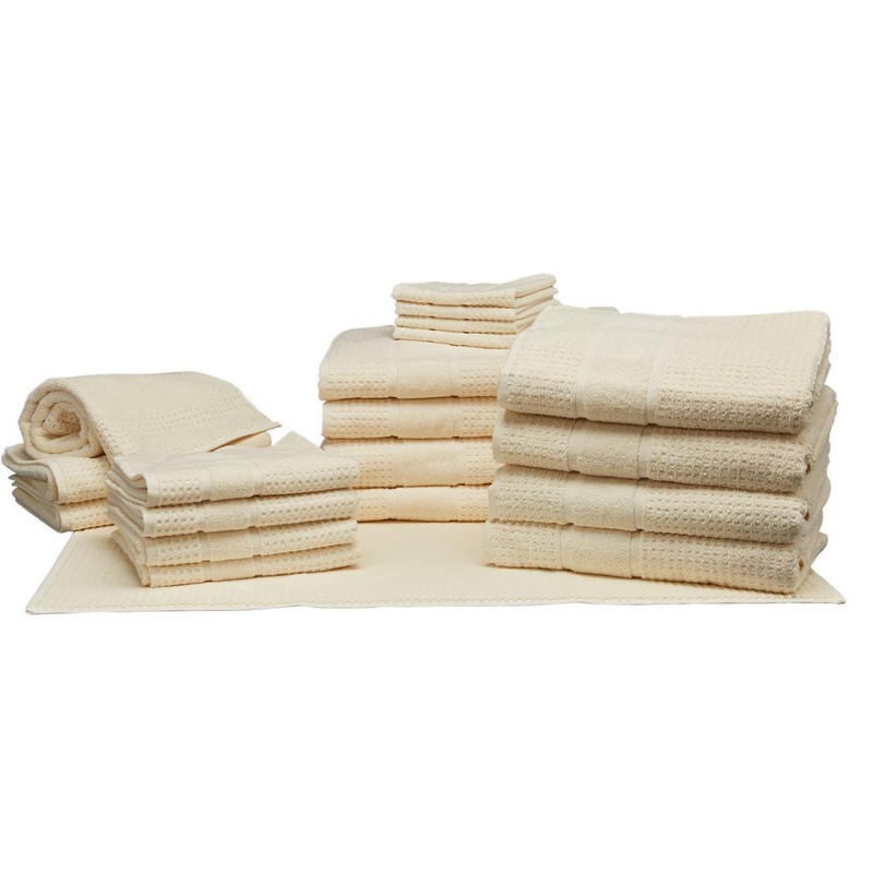 - Turkish Waffle Terry Towels 01 Set of 20 pieces in CREAM color