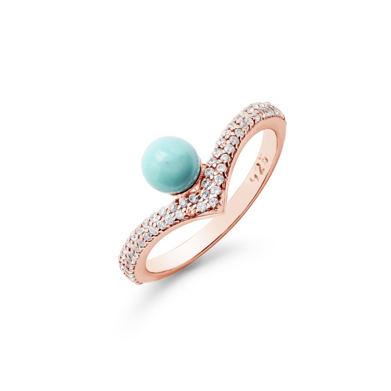 Türkisring Ehering V-Form Verlobungsring Zarter Stapelring Chevron Jubiläum Schlichter Solitärring 925 Sterling Silber Rosévergoldet 66 (21.00)