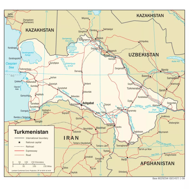 This listing is for a large, clear print of a map of Turkmenistan.