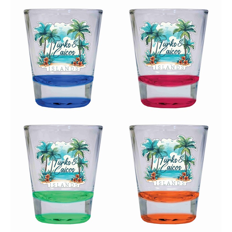 Turks And Caicos Design C Souvenir 1.5 Ounce Shot Glass Round 4-Pack Color