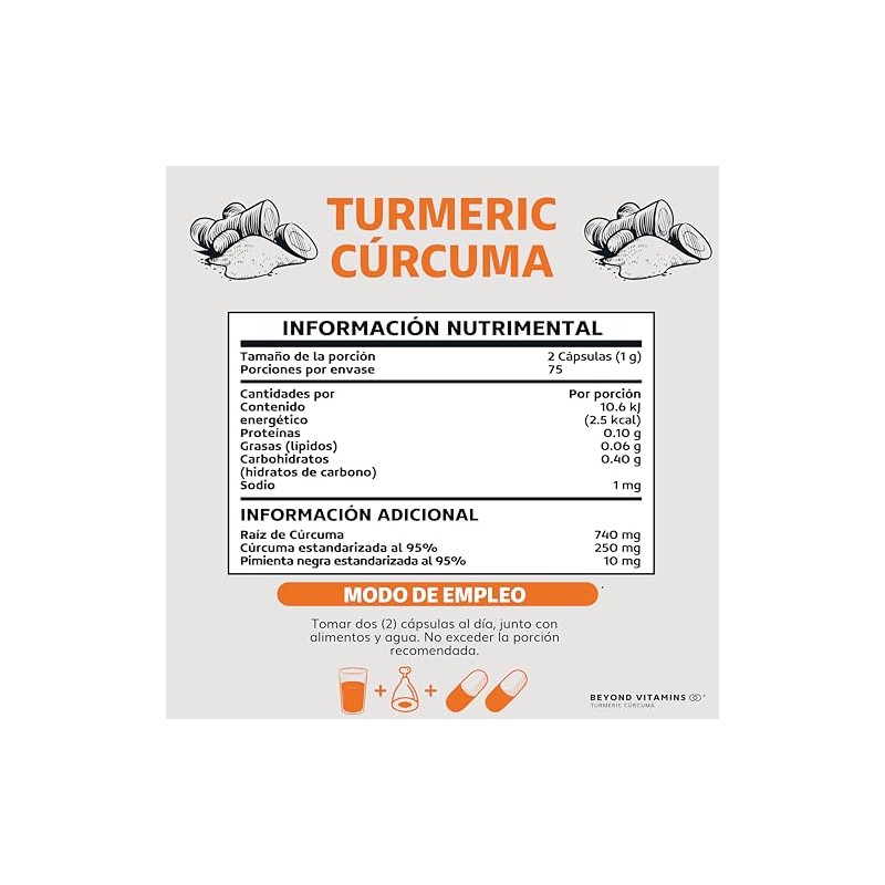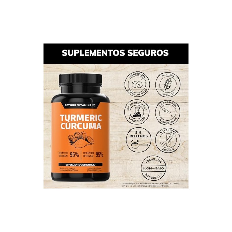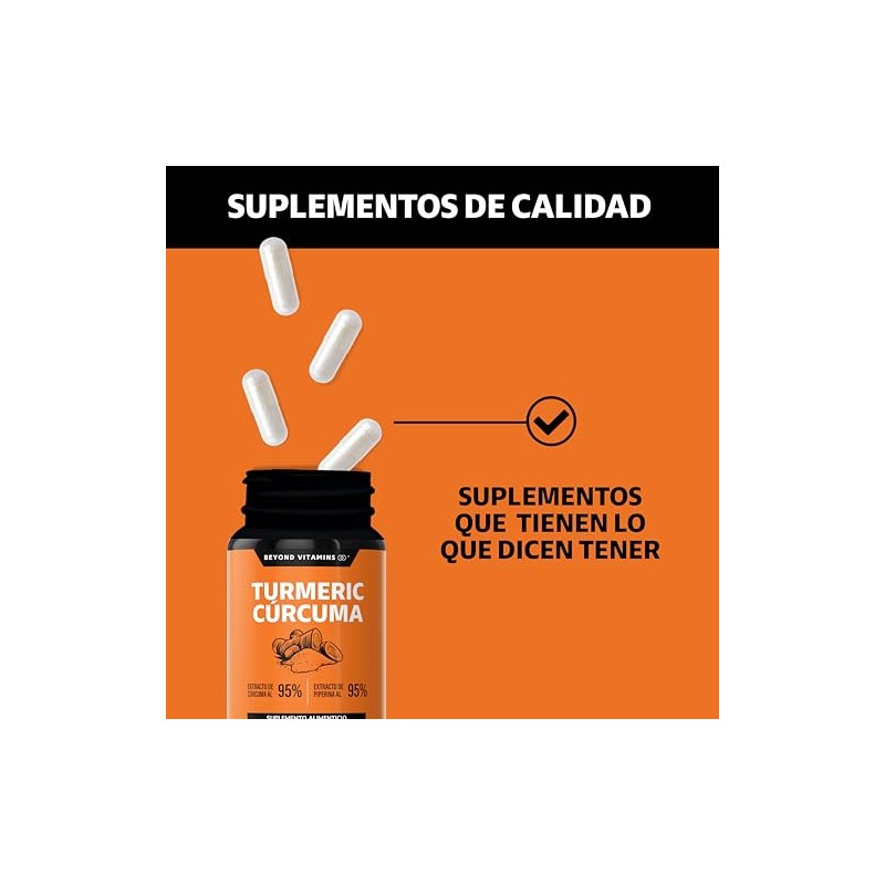 BEYOND VITAMINS - Turmeric Cúrcuma con Extracto de Raíz de Cúrcuma Estandarizada al 95% y Pimienta Negra al 95% - Suplementos formulados con alta potencia y absorción - Alta Potencia con 95% de Curcuminoides Estandarizados - Suplemento Alimenticio en Cápsulas - Ingredientes NON GMO (150 cápsulas). 💯 Autenticidad y máxima durabilidad comprobadas. Construcción robusta y atención al detalle. 🏆 Recomendado por expertos. Ideal para quienes buscan lo mejor en calidad y estilo. Producto auténtico con satisfacción total asegurada. ¡No te quedes sin el tuyo y aprovecha esta oportunidad única!