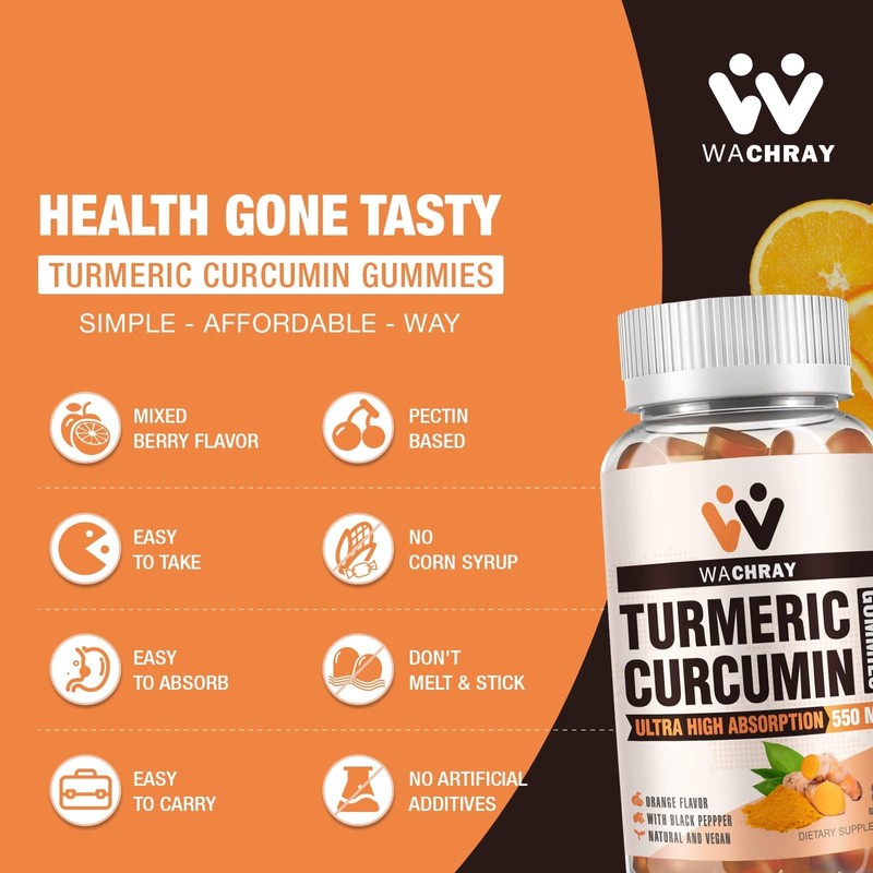 - WORRIED IT WON'T WORK? - Why doesn't it work? because curcumin is poorly absorbed into your bloodstream. So WACHRAY turmeric gummies formula extra added with black pepper extract, that enhances the absorption of curcumin by 2,000%. Every milligram of curcumin you take will do its job!
