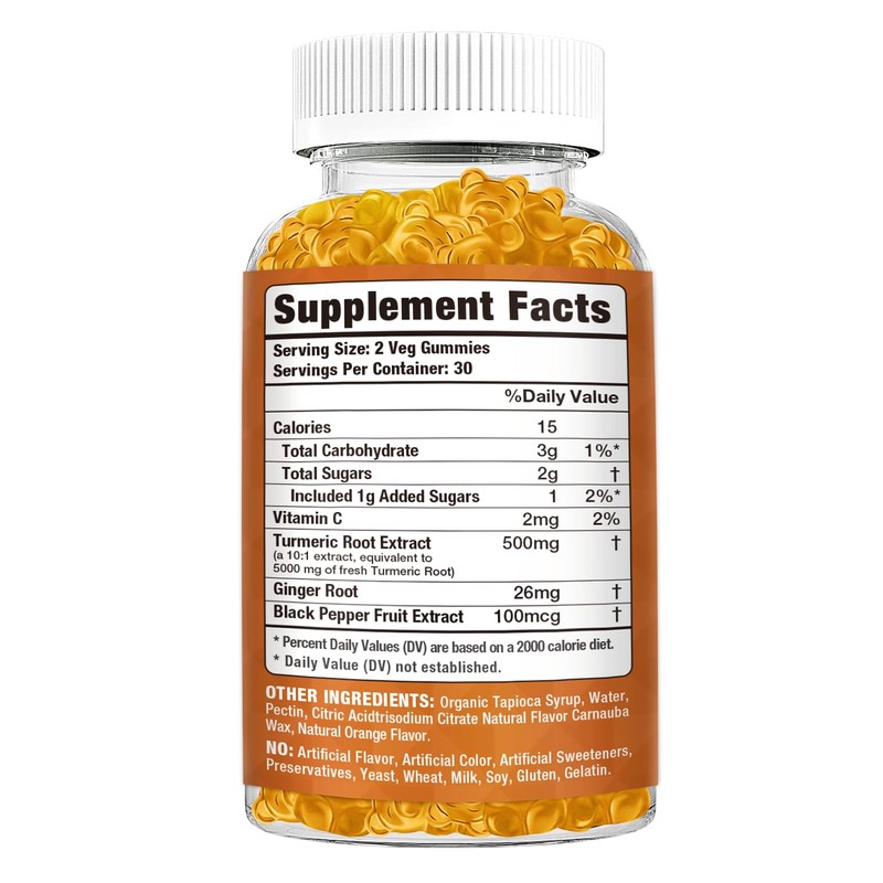 - JOINT SUPPORT SUPPLEMENT: For those who are concerned about the health of their joints, these curcumin gummies are the perfect choice. Curcumin has anti-inflammatory and antioxidant properties that help reduce joint pain and inflammation. Whether it's for morning stretching or relaxing after a workout, this gummies will provide you with a gentle guardian.