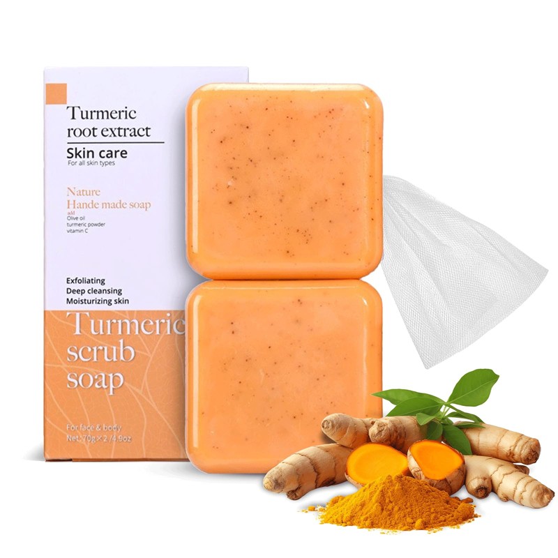 - Turmeric soap is rich in walnut shell exfoliating particles, thoroughly cleanses your skin and removing dirt and oil from your pores.