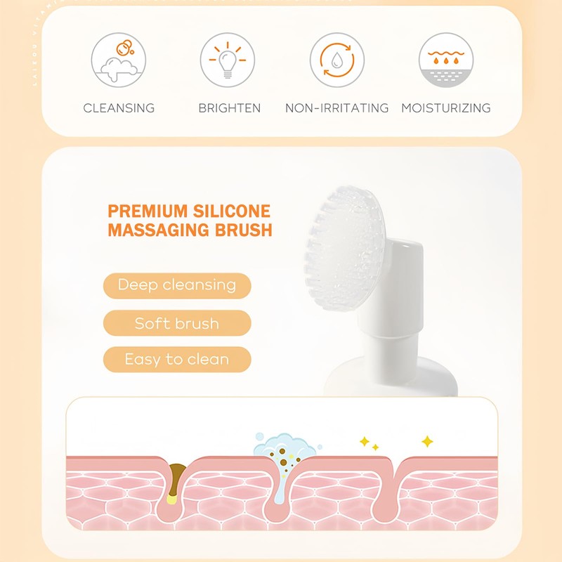 Squeeze out the cleansing foam from the bottle, massage gently, and clean your face with the brush head