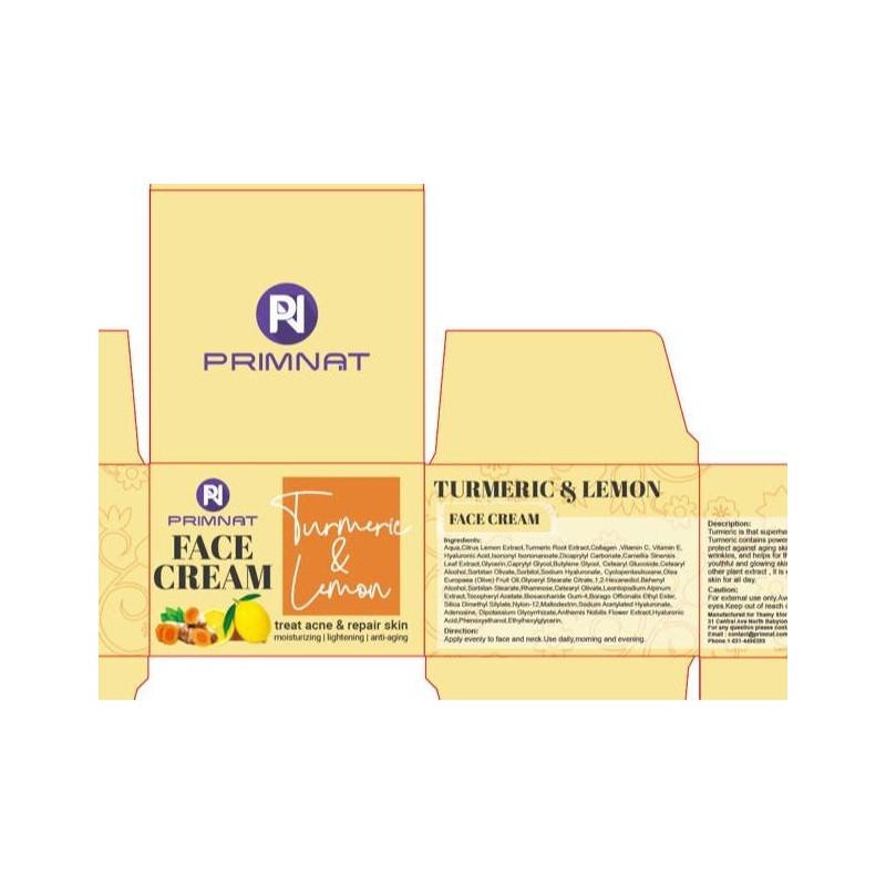 Revitalize your skin with the Turmeric Lemon Face Cream from Primnat! Specially crafted to cater to all skin types including oily, normal, dry, combination and dull; this cream is a must-have in your skincare routine.