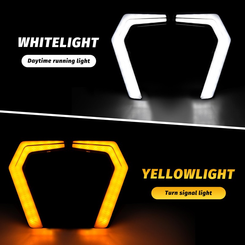 - 【 Appearance & Function Upgrade 】 POKIAUTO Fang light is directly installed on the vehicle's grille, making the originally dim front of the general dazzling and unique; The additional light source and yellow turn signal function provided make the vehicle more eye-catching at night, and a brighter view ensures safe driving at night