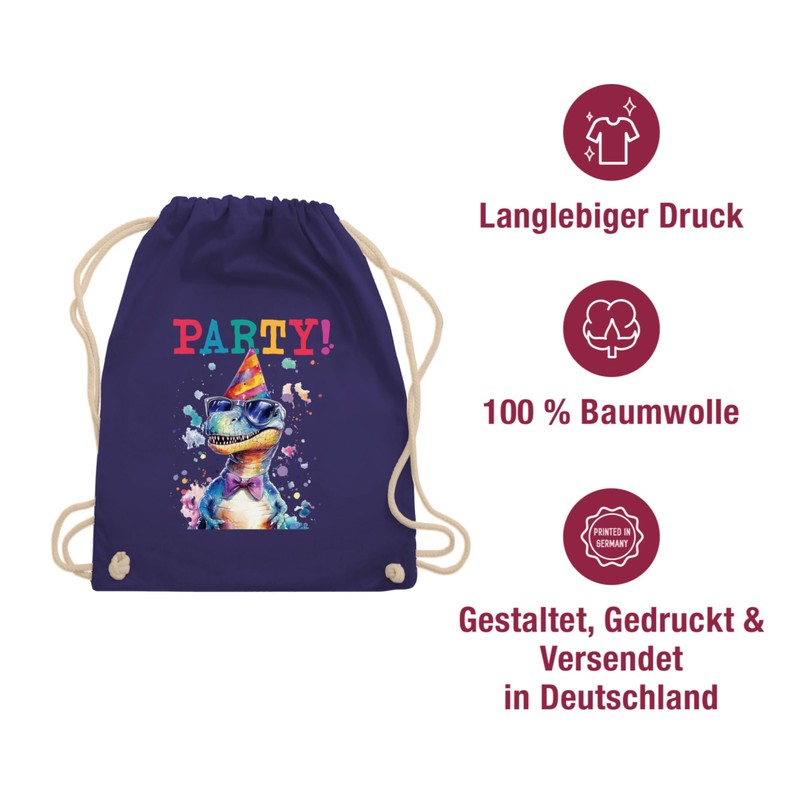 Turnbeutel Rucksack - Accessoire - Party Dino personalisiert I Party Geschenk Dino Kostüm Fasching T-Rex Partystimmung I Dinosaurier Kostüm Karneval I Fastnacht - Unisize - Lila - karnevals