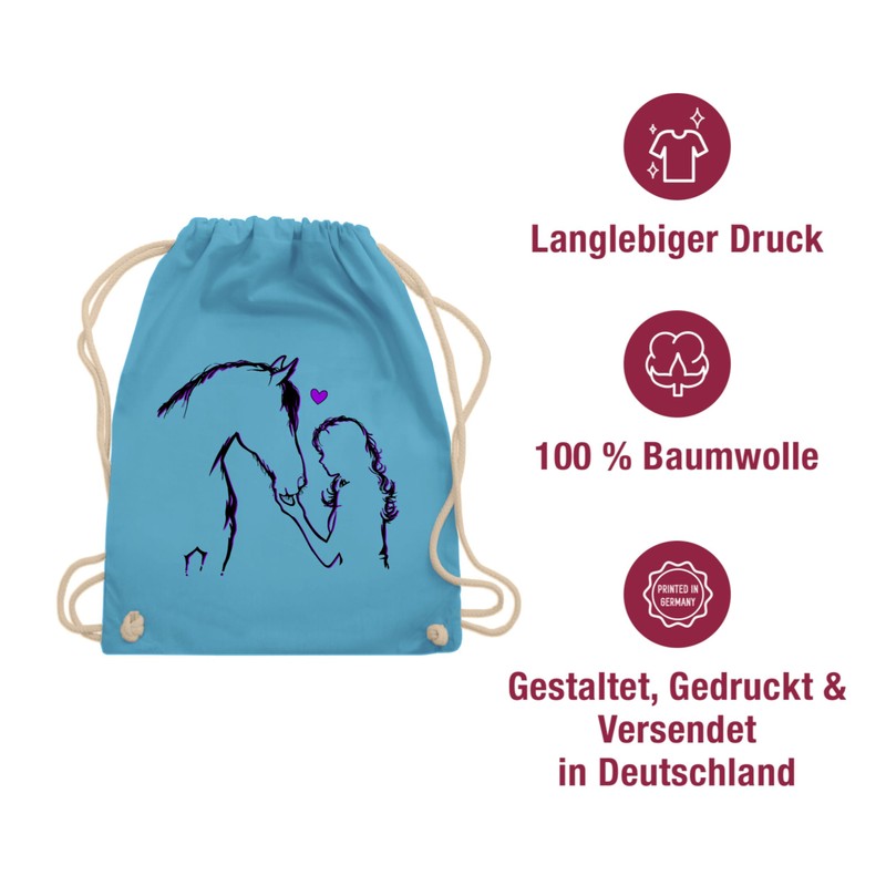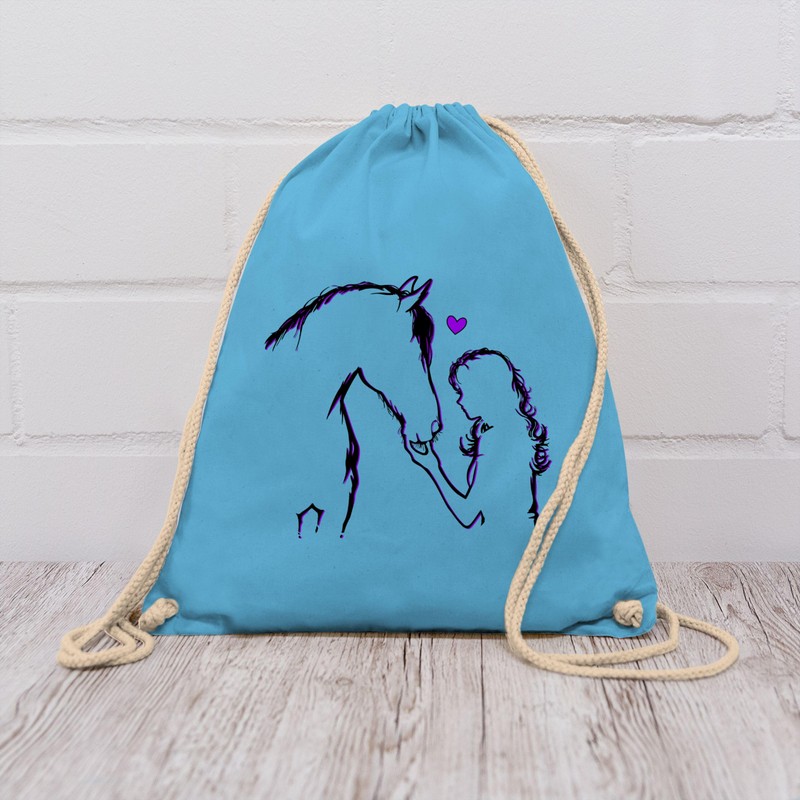 Turnbeutel Rucksack - Taschen - Pferd und Reiterin Geschenk Pferde Mädchen I Pferd Geschenk für Pferdeliebhaber I Reiten Mädchen Geschenke für Pferdefreunde I Reitlehrerin - Unisize - Hellblau