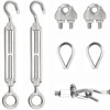 - PACKAGE INCLUDES 2 pcs M5 eye and hook turnbuckles, 2 pcs M3 thimbles, 2 pcs M3 cable clamps.