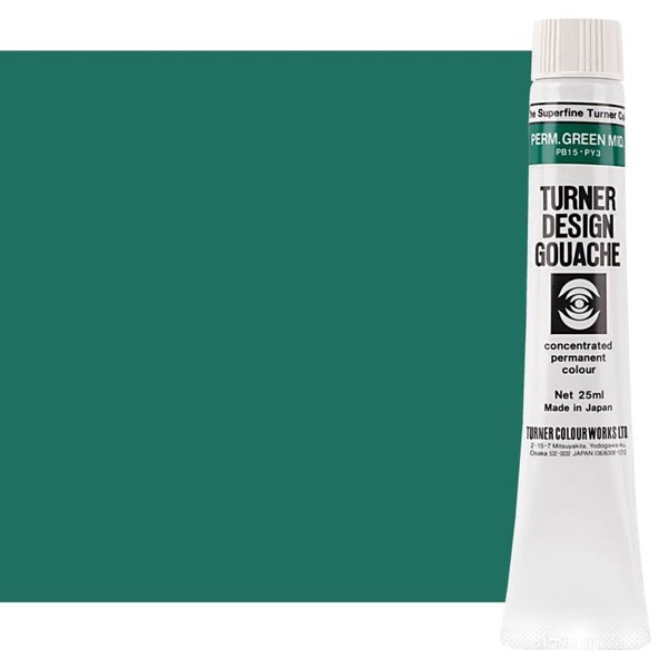 Turner Colour Works Design Gouache Premier Opaque Watercolors - 25ml Tube - Permanent Green Middle