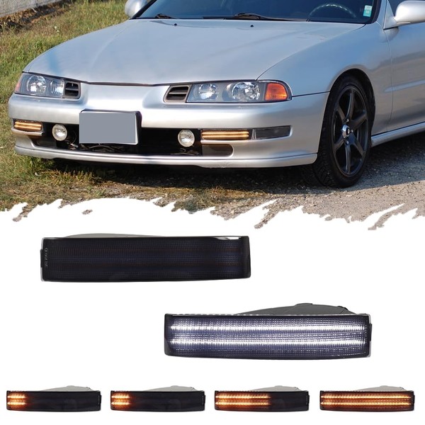 TurningMax For 1992 1993 1994 1995 1996 Honda Prelude Front Bumper Inner Turn Signal Lights Smoked Lens Amber/White LED
