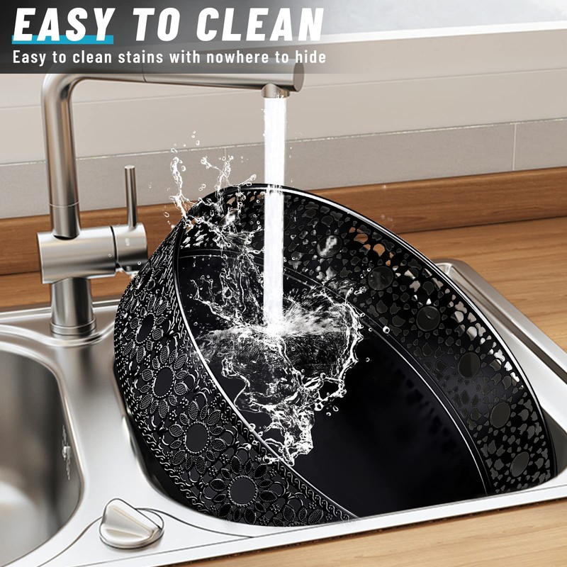- 360° turntable spice organizer refrigerator organizer with exquisite sunflowers design: the edge of the black lazy susan spice rack turntable organizer has a sunflower pattern and raised edge, which is not only beautiful, but also prevents items from falling.