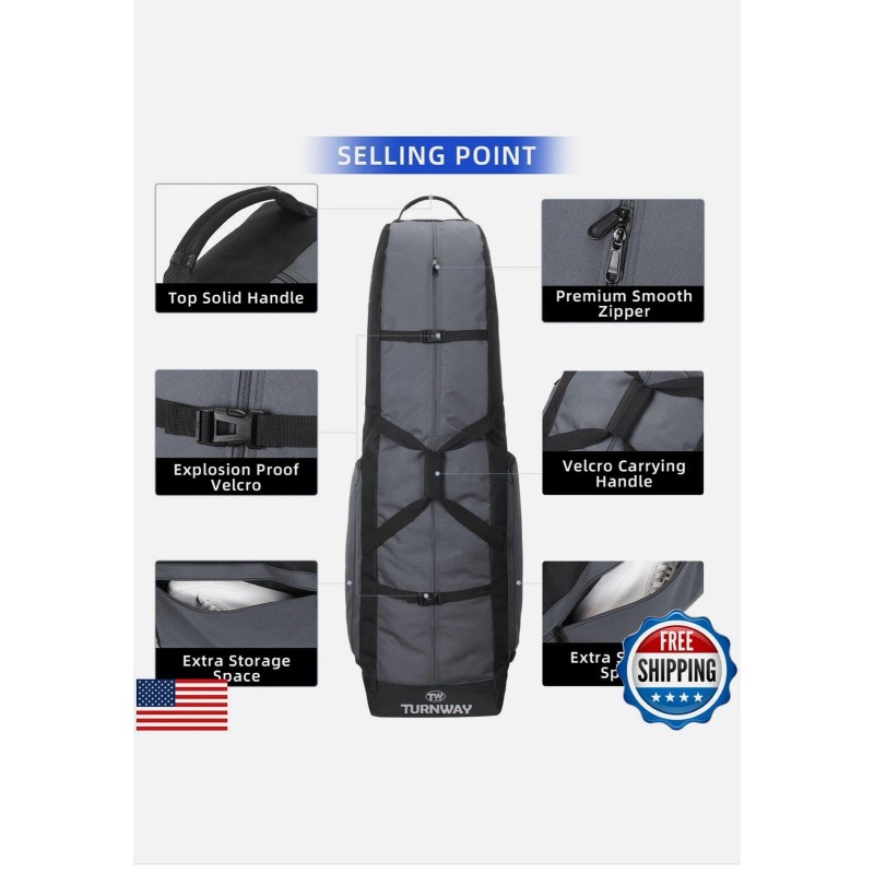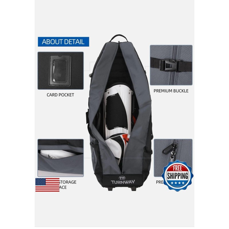 TurnWay Foldable Padded Golf Travel Bag w/Wheels Heavy Duty 900D Polyester Case