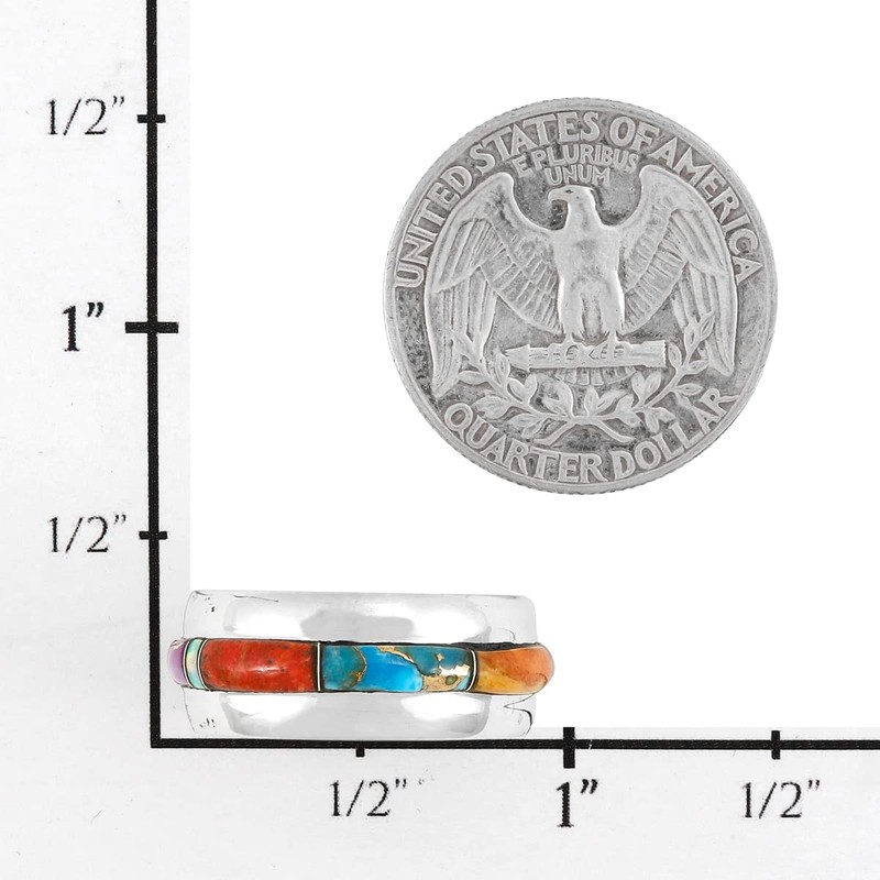 Turquoise Band Ring Sterling Silver 925 Genuine Gemstones (Wide-1/3", Multi-Gems) (9)