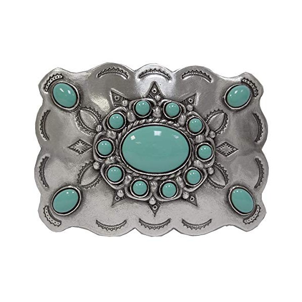 Turquoise Bead Belt Buckle Antique Sterling Silver Finish
