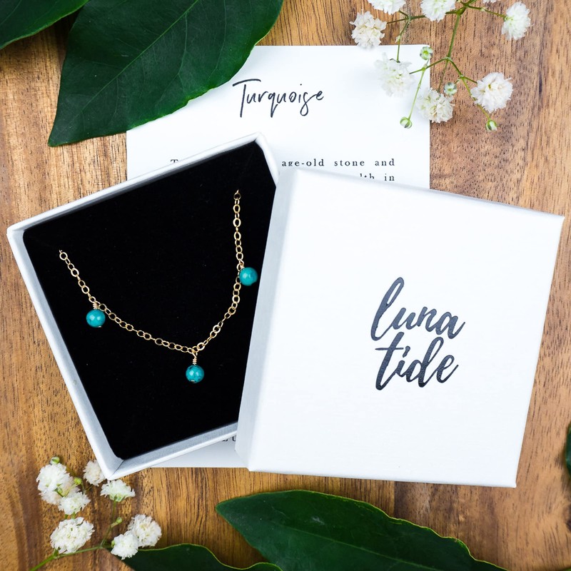 Turquoise Bead Drop Anklet in 14k Gold Fill