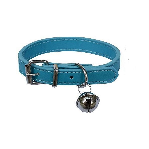 Turquoise Blue Leather Pet Collars for Cats Puppy, Adjustable 8"-10.5" Kitten Collar with Bell