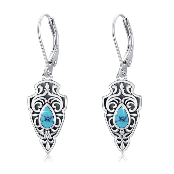Turquoise Earrings for Women 925 Sterling Silver Filigree Turquoise Dangle Drop Leverback Earrings Western Turquoise Jewelry for Her