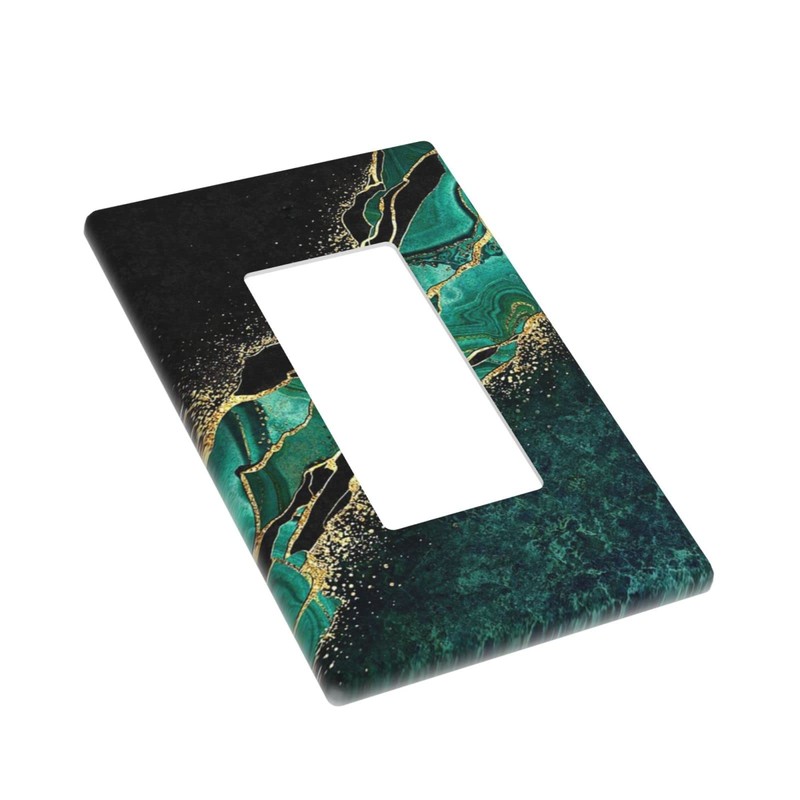 Turquoise Green Teal Gold Marble Texture 1 Gang Rocker Light Switch Cover Single Decora Wall Plate Decorative Electrical Switchplate for Bathroom Bedroom Kitchen Home Decor