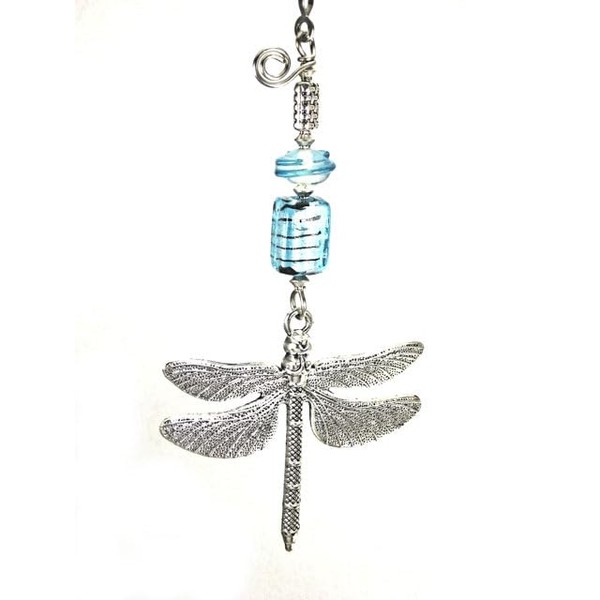Turquoise Ice Blue Silvery Metal Dragonfly Ceiling Fan Pull Chain