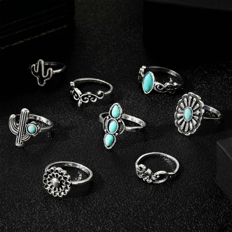- Bold Turquoise Design for Western Elegance:Elevate your style with these striking turquoise rings for women, designed to pair perfectly with western outfits or festival wear.